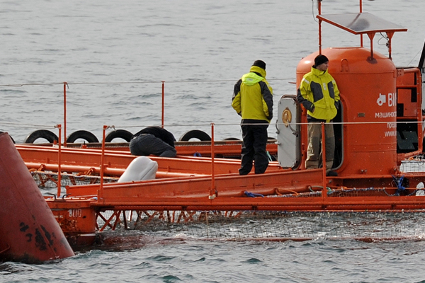 Quattro battelli-hotel, ormeggiati al porto olimpico trasportano un totale di 12.000 passeggeri. I beluga (Delphinapterus leucas) addestrati, sorvegliano movimenti subacquei o altri oggetti sottomarini non identificati che possano costituire un pericolo e segnalano eventuali situazioni sospette ai militari, suppone il giornale, in assenza di informazioni ufficiali l'uso di delfini polari per la difesa della baia, grazie alla loro capacità unica di ecolocalizzazione.