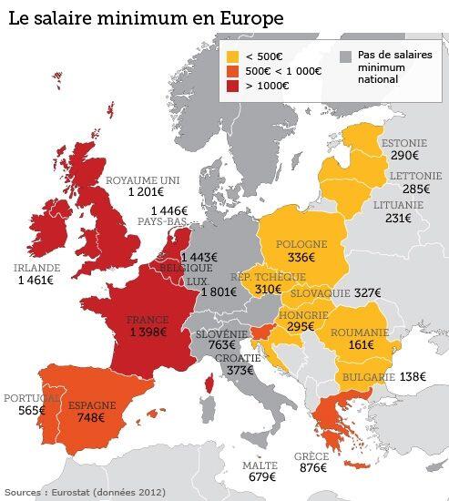 Essa mostra il più basso (138 € in Bulgaria), e il più alto, che non è l'Italia perchè non esiste (1.398 euro), ma l'Irlanda (€ 1.461), contrariamente alla credenza popolare.